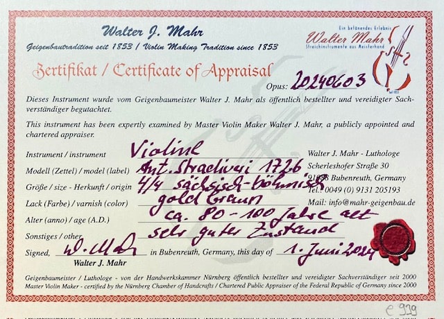Das Instrument wurde vom Geigenbauer überholt und ist in einem sehr guten Zustand: