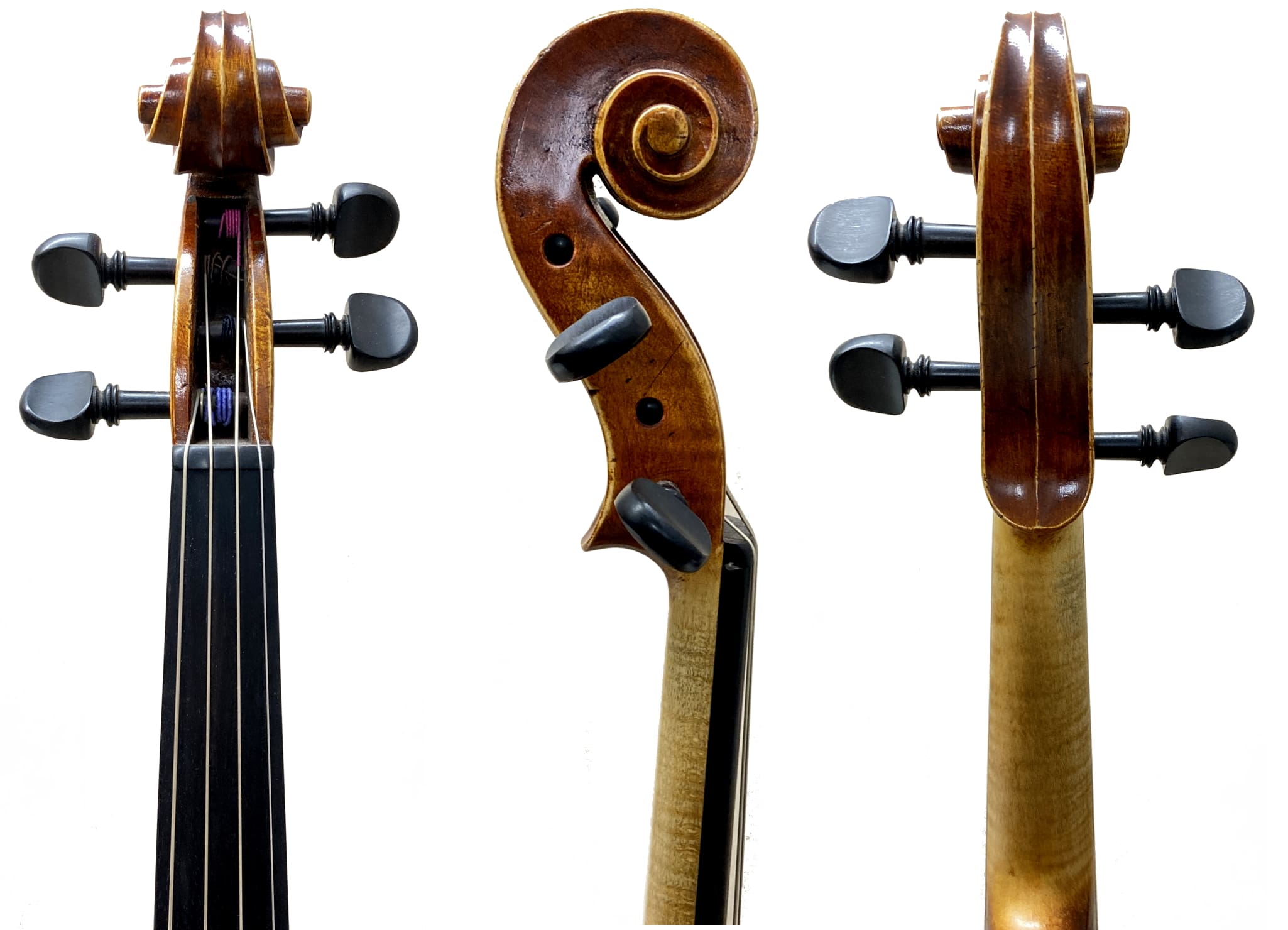 Ausgestattet mit Ebenholzwirbel, Ebenholzgriffbrett, neuer Steg. Kunststoff Kinnhalter. Saitenhalter mit vier integrierten Feinstimmern. Saiten: Pirastro Obligato.