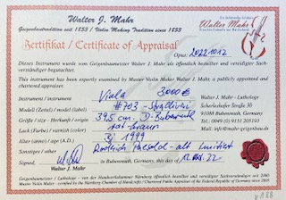 Hochwertige Viola. Rotbraune, altimitierende Lackierung. Stradivari Modell Nr. 703 (siehe auch Zettelabbildung).