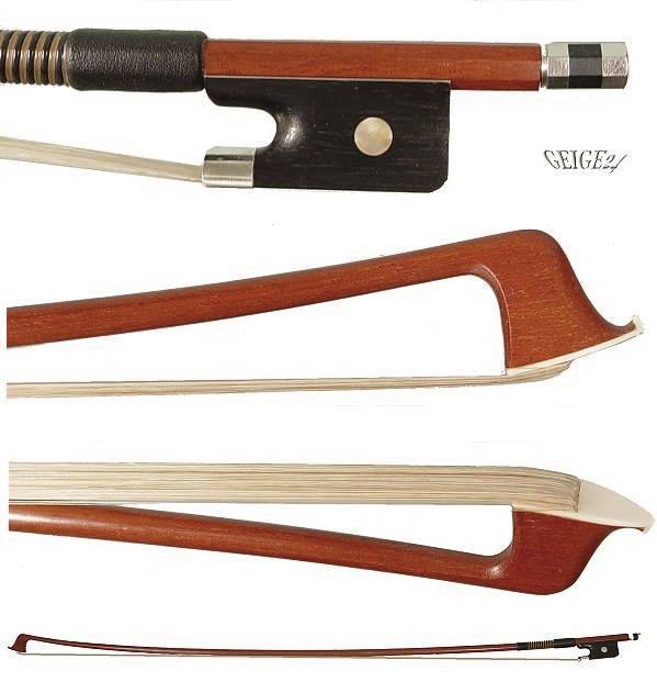 Die runde Stange wurde Brasilholz gefertigt. Ebenholzfrosch, Perl-Auge, dreiteilige Endschraube (Beinchen), Kunststoffkopfplatte.