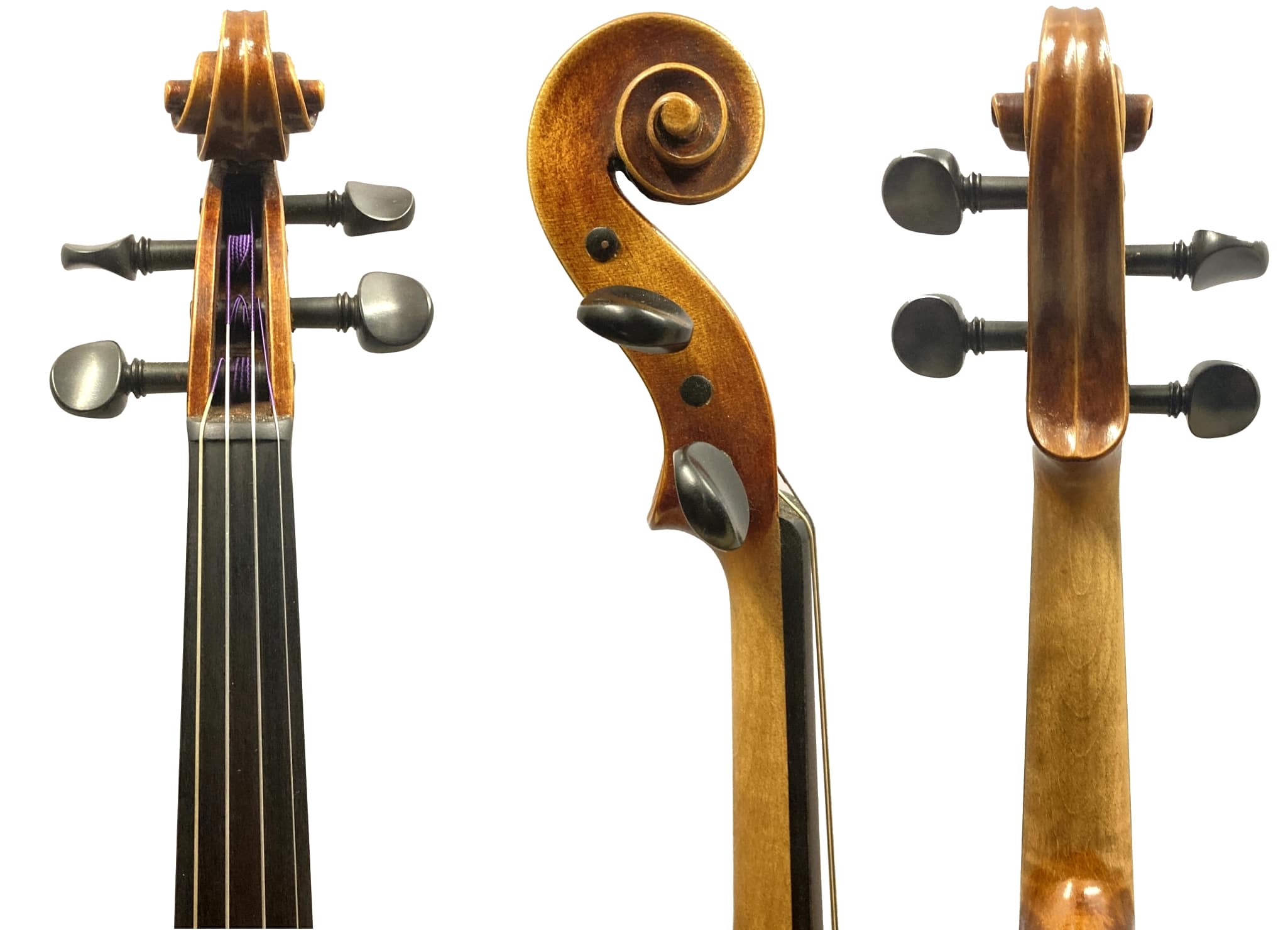 Sehr schöne Geige - eine Stufe unter der Meisterklasse (beginnt ab Qualitätsstufe III). Von Hand lackiert - der goldbraune Spirituslack gibt dem Instrument ein edles und wertiges Aussehen. Edles Design: italienisch alt imitierender Lack.