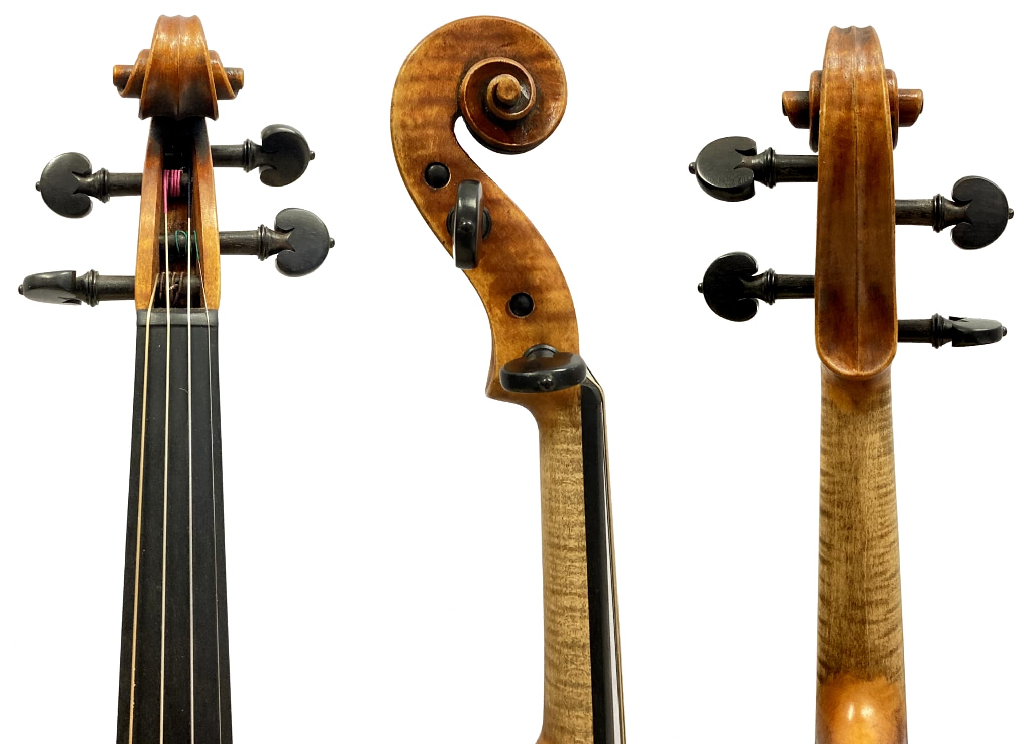 Lack: Durch die in vielen Schichten mit Pinsel aufgetragene Handlackierung kommt die Schönheit des Holzes porentief zur Geltung. Goldbrauner Lack, altdeutsch imitierend. Zeitloses Design: die Geige sieht wieder alt noch neu aus.
