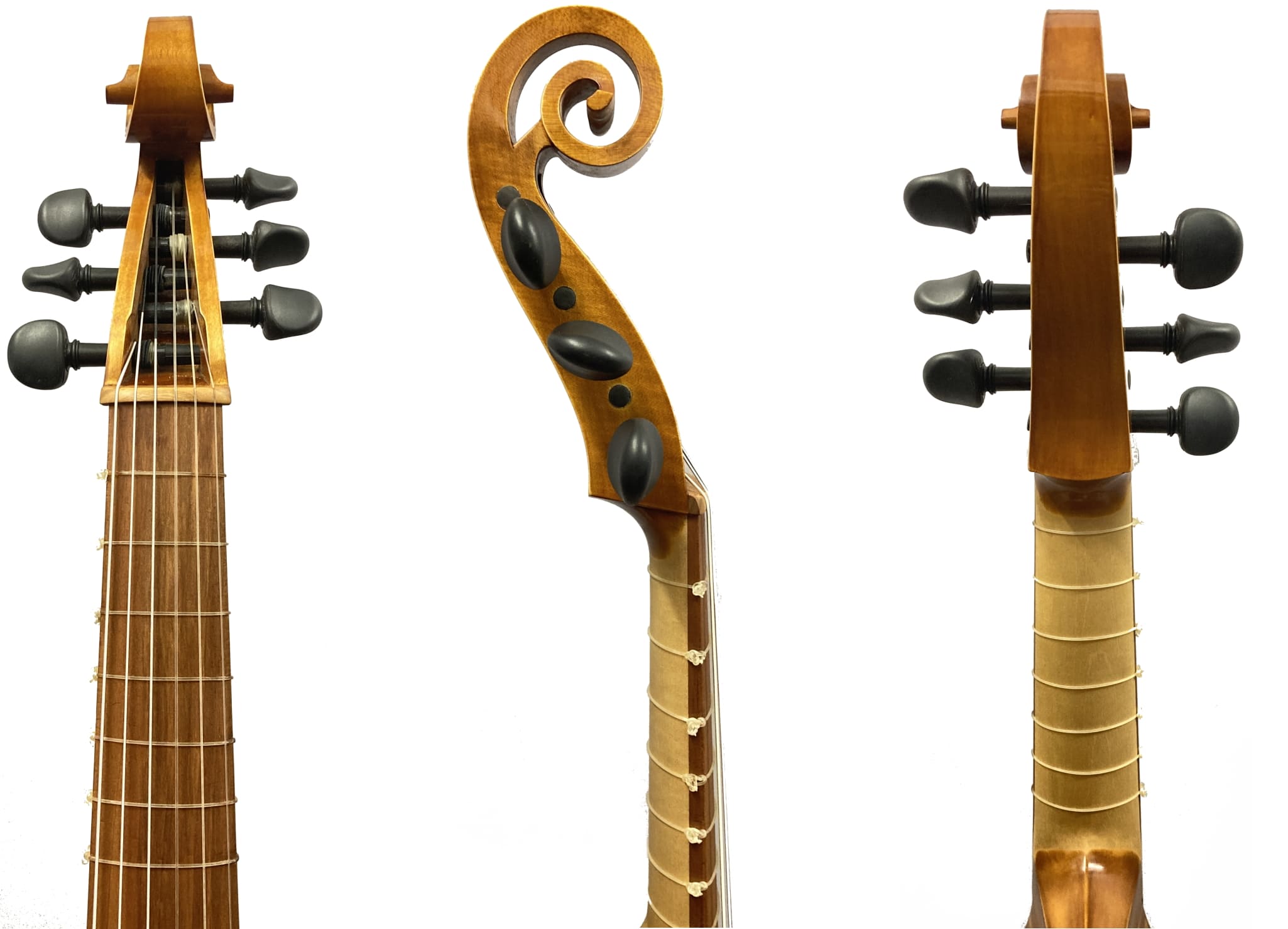 Sehr schönes Instrument, fertiggestellt im Jahre 2025. Altgambe, 6-saitig. Sehr schöne Klangholzfichtendecke, gewölbt. Zargen und flacher Boden aus Ahorn. Barocksaitenhalter mit Dornbefestigung. Hochwertige goldbraune Handlackierung nach einer 150 Jahre alten Rezeptur aus rein natürlichen Harzen.