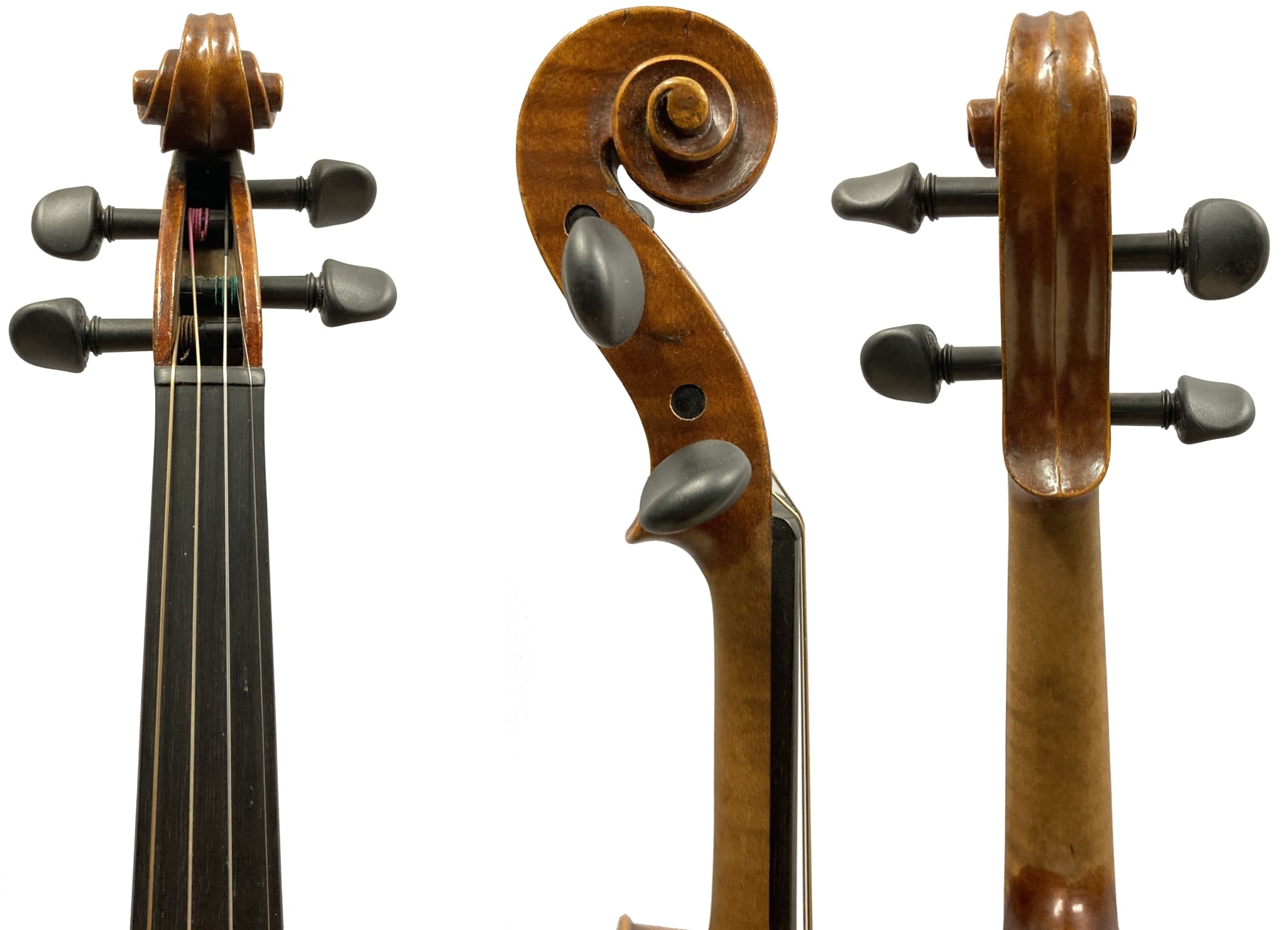 Keine Reparaturen, keine Risse am Korpus unter UV-Licht zu erkennen. Dem Alter entsprechende Gebrauchsspuren im Lack. Das Instrument wurde vom Geigenbauer überholt und ist in einem sehr guten Zustand: